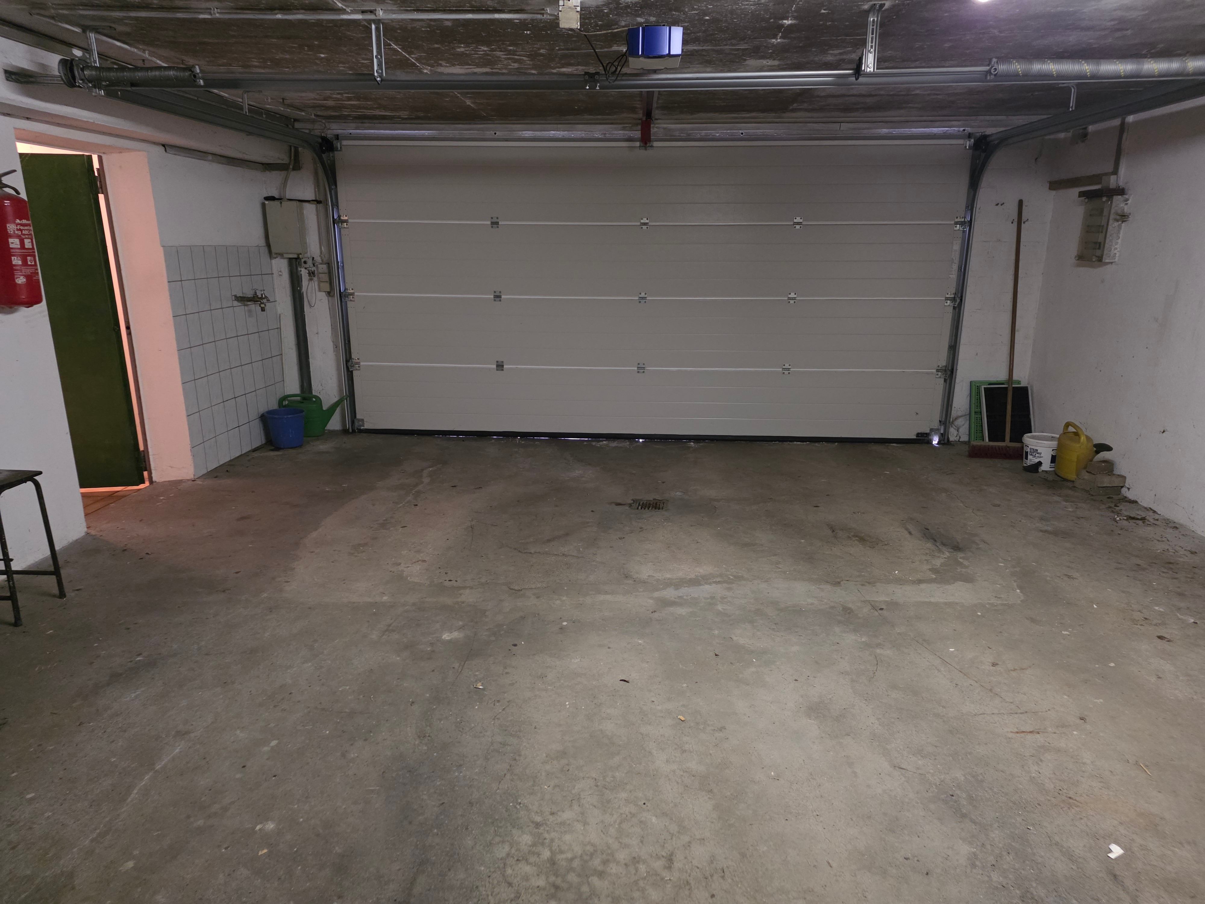 Im UG sind zwei Schlafzimmer, eine Toilette, eine Waschküche mit Dusche und ein Kellerraum vorhanden. In die angebaute Doppelgarage mit großem Abstellraum gelangt man direkt über den Heizöllagerraum. Die angebaute Doppelgarage mit dahinterliegendem Abstellraum hat eine Gesamtfläche von ca. 90 m². Hier können nicht nur zwei Autos abgestellt, sondern auch Hobbys ausgeübt werden. Im Jahr 2021 wurde ein neues Garagentor mit elektrischem Antrieb eingebaut.
